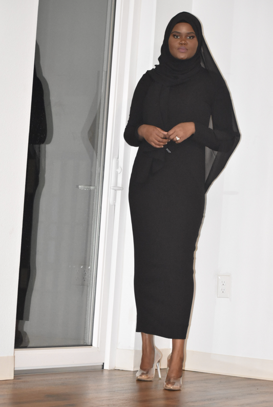 Black Ribbed Maxi Dress